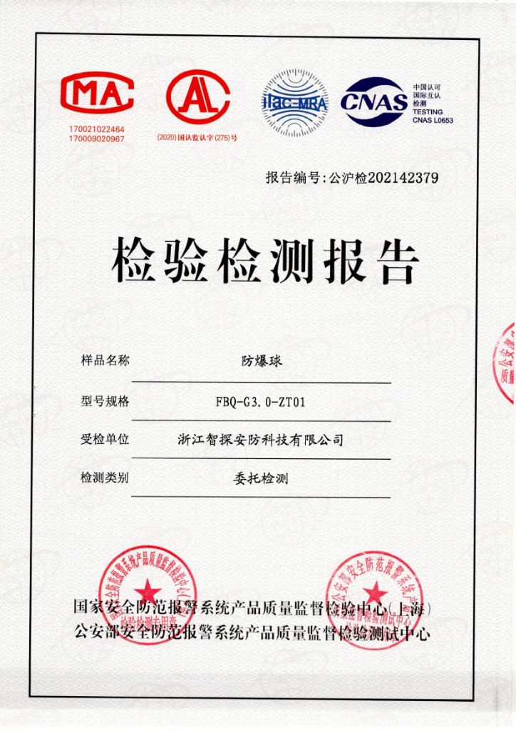 防爆球公安部檢測報告