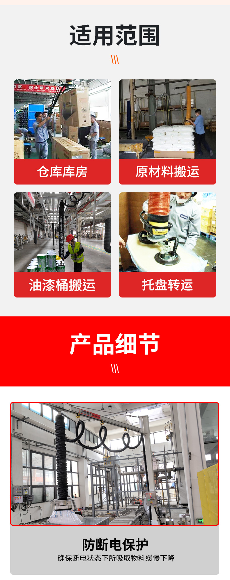 1、氣管吸吊機吸附產品超過額定載重量,則無法提升;(設備自帶功能)