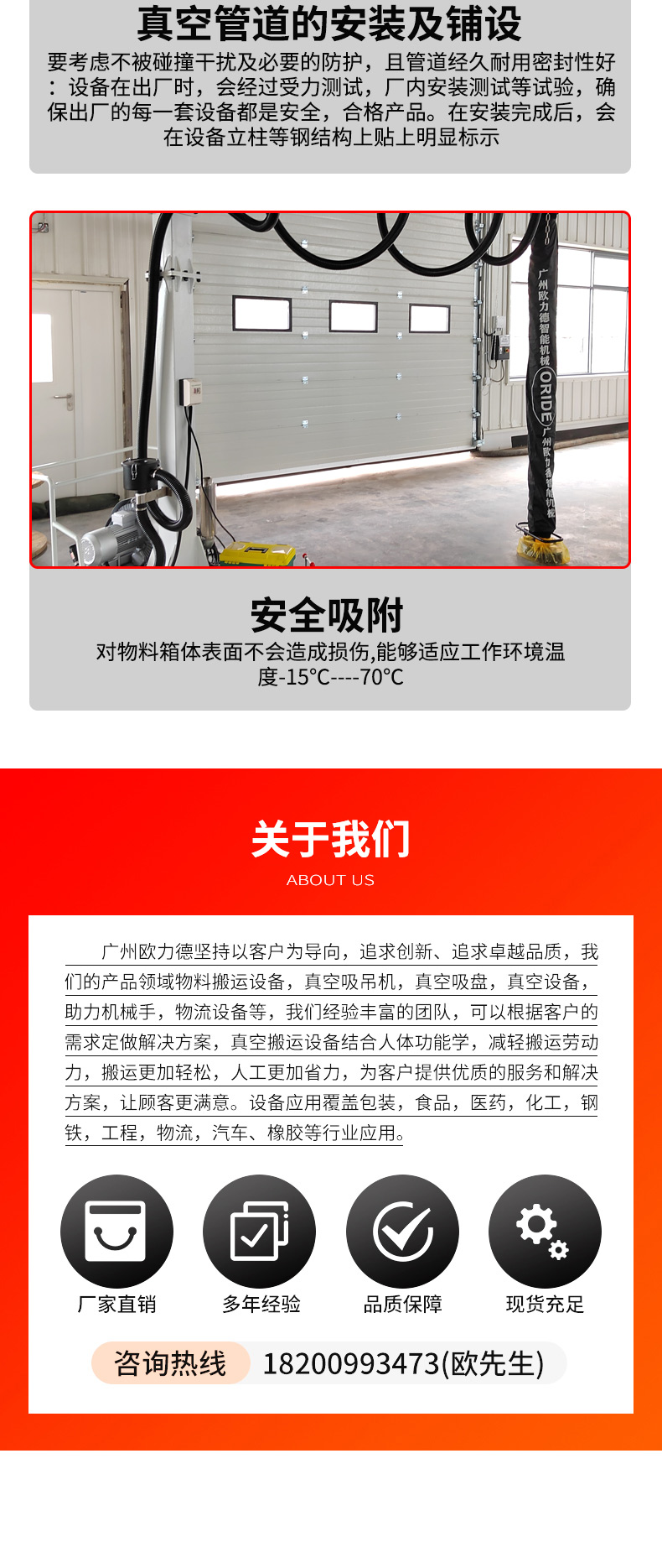 歡迎訪問廣州歐力德智能機械設備有限公司網站,本公司專注:物料搬運設備,真空吸吊機、真空吸盤、助力機械手真空設備結合,減輕搬運勞動力!