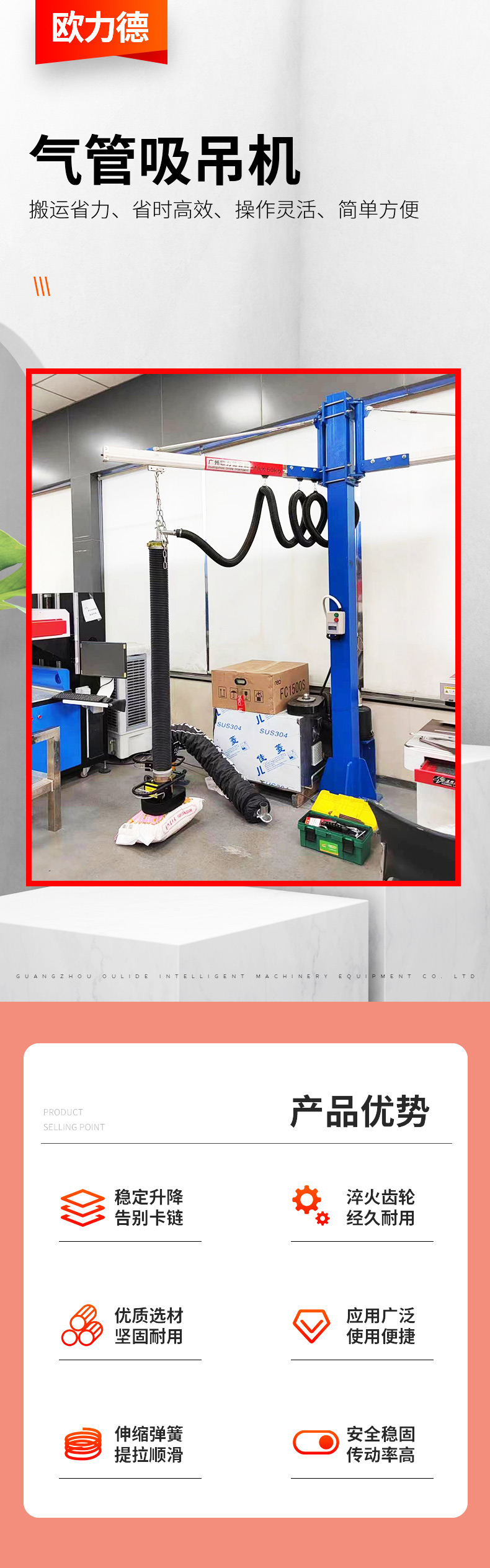 歡迎訪問廣州歐力德智能機械設備有限公司網站,本公司專注:物料搬運設備,真空吸吊機、真空吸盤、助力機械手真空設備結合,減輕搬運勞動力!