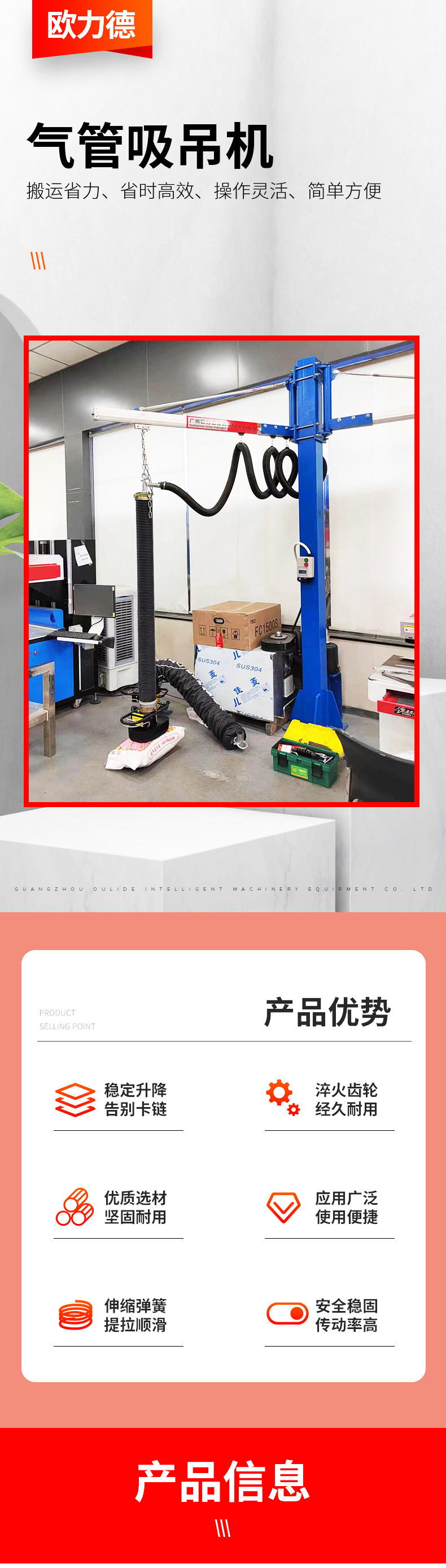 歡迎訪問廣州歐力德智能機械設備有限公司網站,本公司專注:物料搬運設備,真空吸吊機、真空吸盤、助力機械手真空設備結合,減輕搬運勞動力!