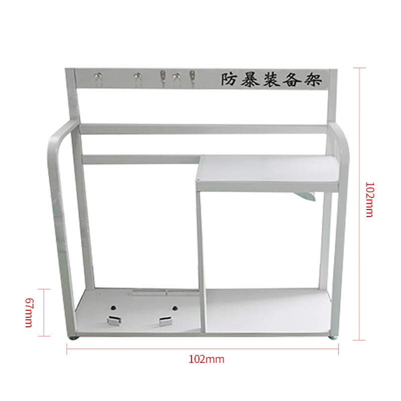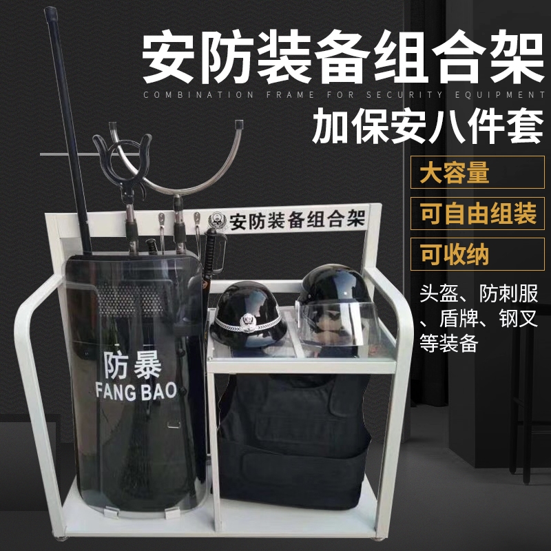 ZBJ-ZT01型安防裝備架采用2mm厚優質冷軋鋼制作,可以用來放置鋼叉,盾牌,警棍,防暴棍、服裝,頭盔等警用裝備及保安器材,裝備架寬1080mm,高1060mm,深370mm.重量20KG